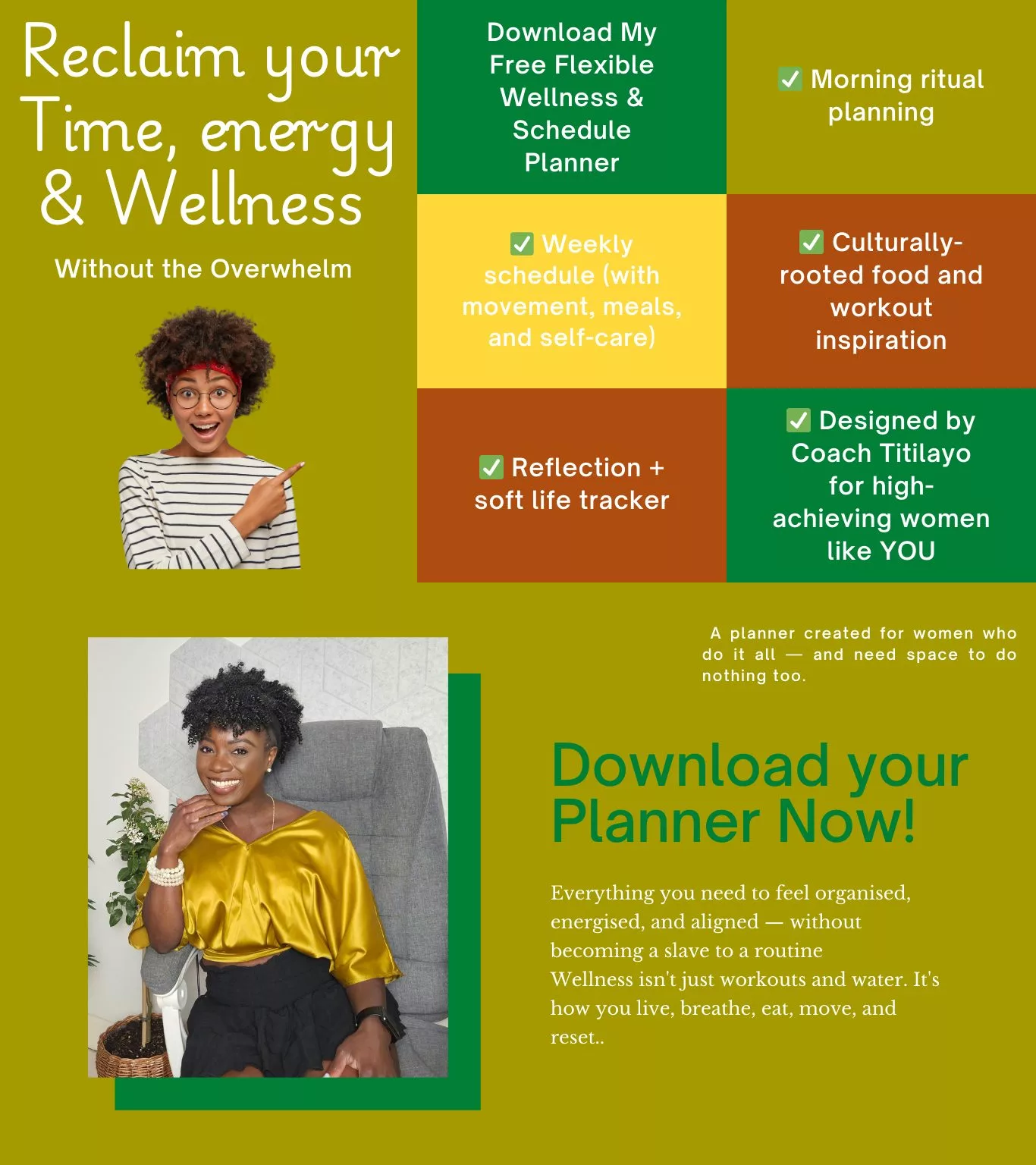 Download the Flexible Wellness & Schedule Planner for Busy Women. A simple tool to organise your time, energy, meals, and movement in one place.